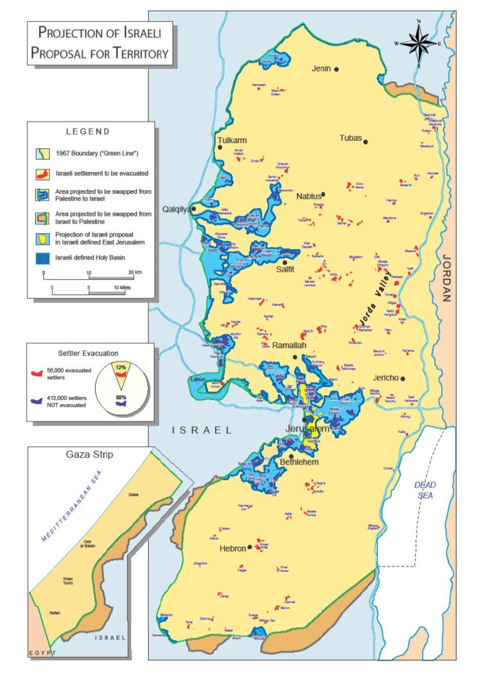 The swap would leave major settlement blocs in Israel, but also require evacuating dozens of smaller settlements.